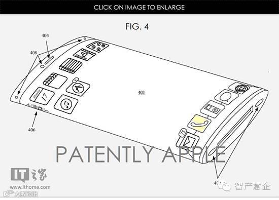 这是一项苹果在2013年提交的专利,在这份专利中,苹果iPhone变成了中间厚,两边薄的设计,而且配备了前后双显示屏,两块显示屏似乎是无缝衔接,形成了一整块环绕式显示屏。值得一提的是,在苹果的这份设计中,我们完全没有看到苹果独特的Home键设计,难道放弃Home键已在苹果的计划之中?