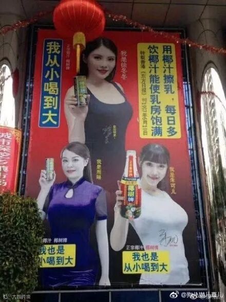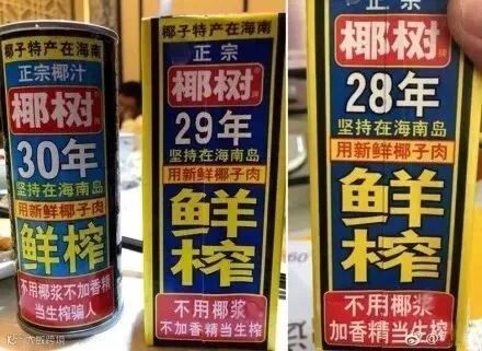 不过说起来,椰树也是很有原则很坚持的品牌了,30年不换画风的包装(老板亲自设计的,谁敢换啊),以及必须到了日子才换的广告语,真是严谨的企业。