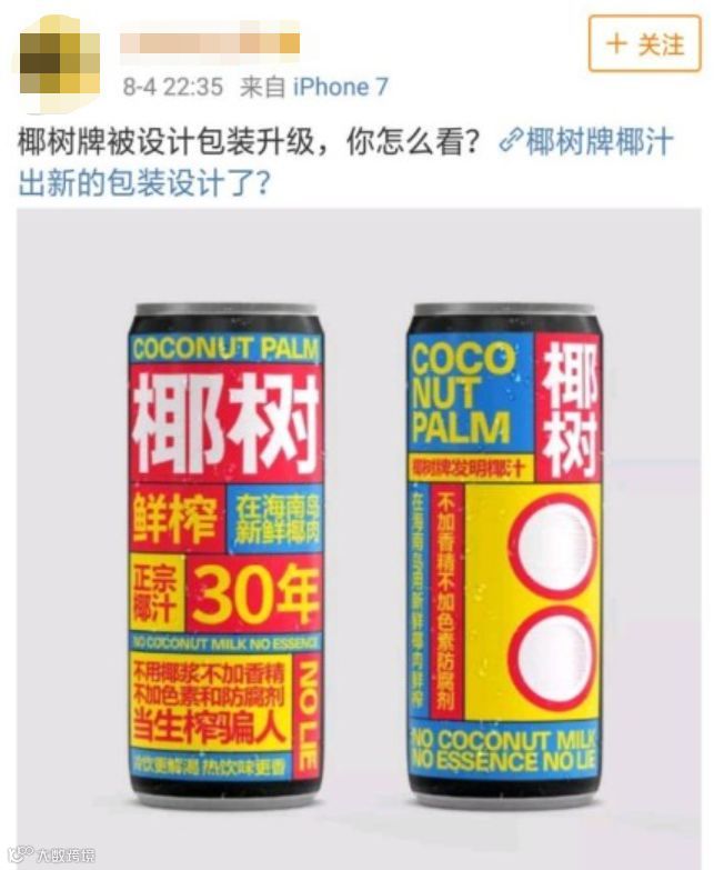 圈主在微博上看到椰树牌椰汁包装升级,震惊了!