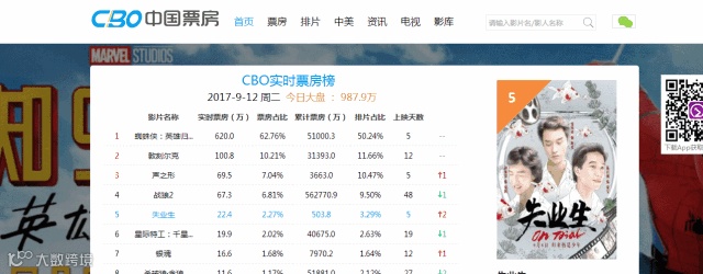 推荐理由:想必大家获取票房信息可能是某门户网站或者某新闻媒体,作为广告人,对于信息的把握,滞后于媒体,只能说太弱了。即时把握票房动态,了解当下最热门的电影,或许下一波热点就在此产生。
