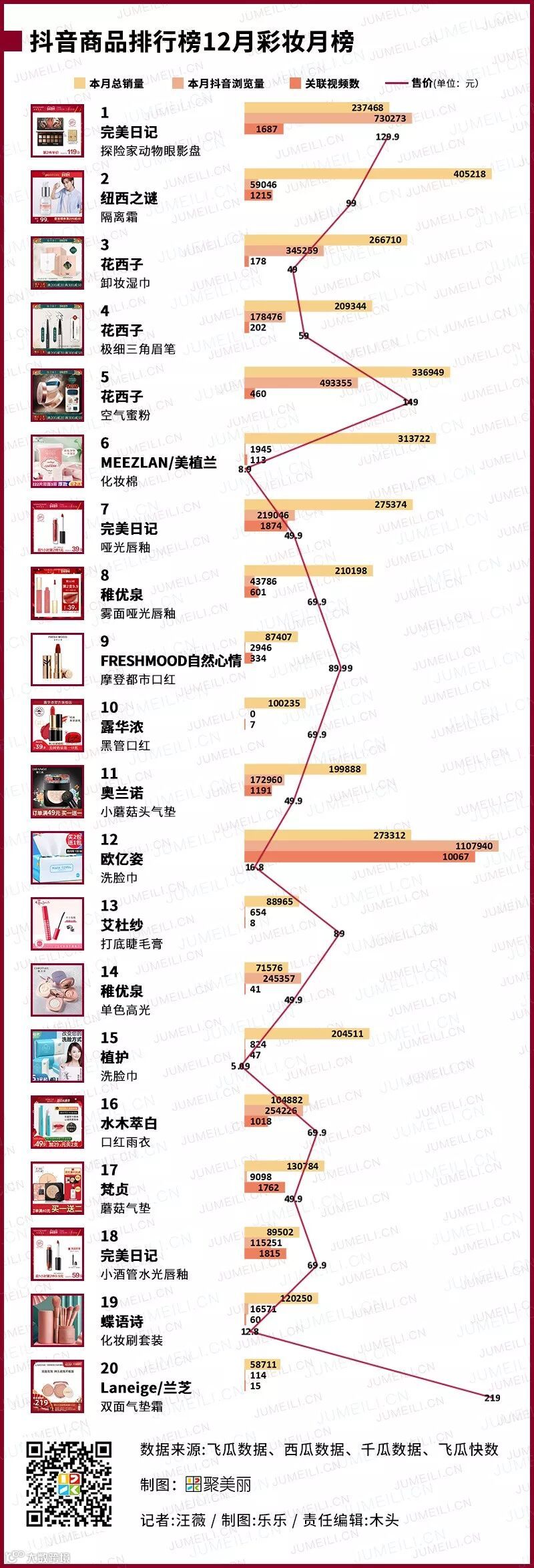 聚美丽的《数聚》已经报道了一年时间,我们从前5个月的淘宝销售榜单介绍,再到7月正式开始关注抖音、快手等社媒平台上的红人、商品的数据。