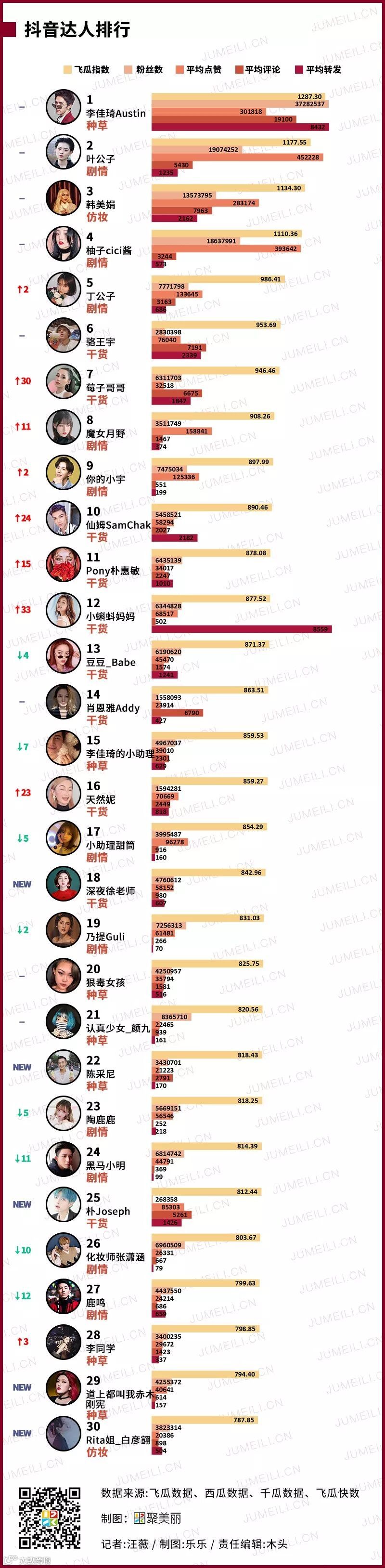 2)抖音播主排行榜TOP30