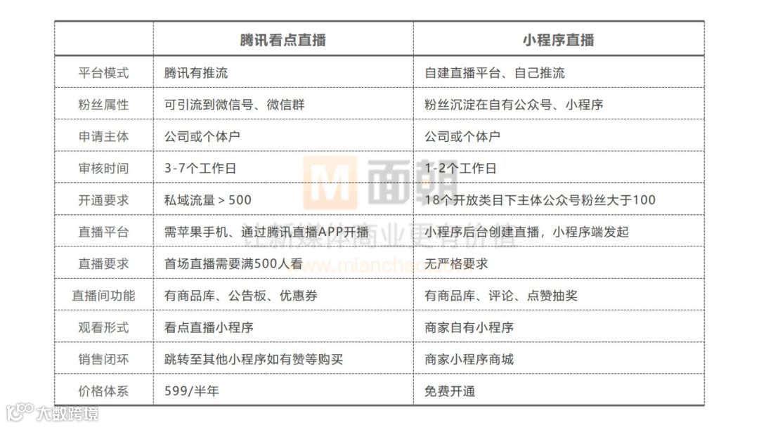 腾讯看点直播与小程序直播各方面对比