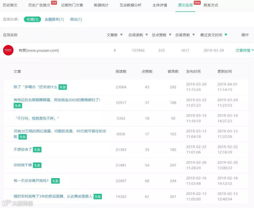 原文应用上,【七毛】涉及有赞商品的广告文章也不少,并且从阅读与留言上也能看出粉丝对广告文章的接受度也是很不错的。