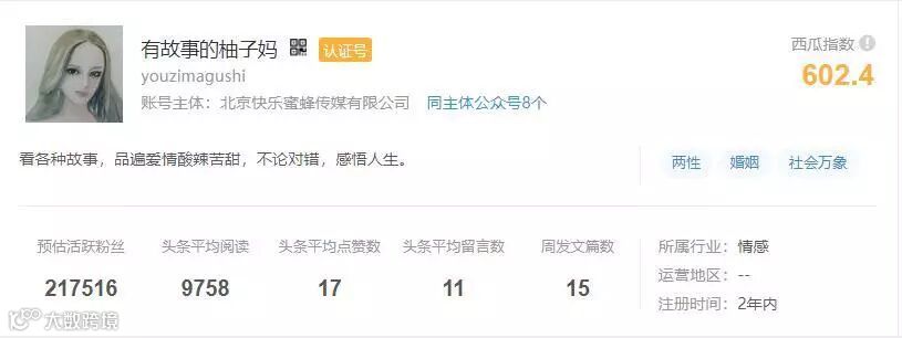 周平均阅读1万左右的【有故事的柚子妈】,在同等体量的情感类公众号中,表现还是不错的。