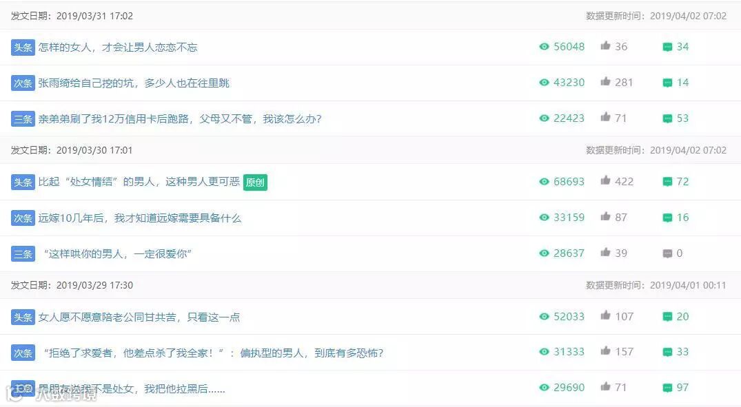 文章主要围绕着女性婚姻生活为主题,对于已婚拥有购买能力的女性粉丝来说是能引起很多谈论话题的。