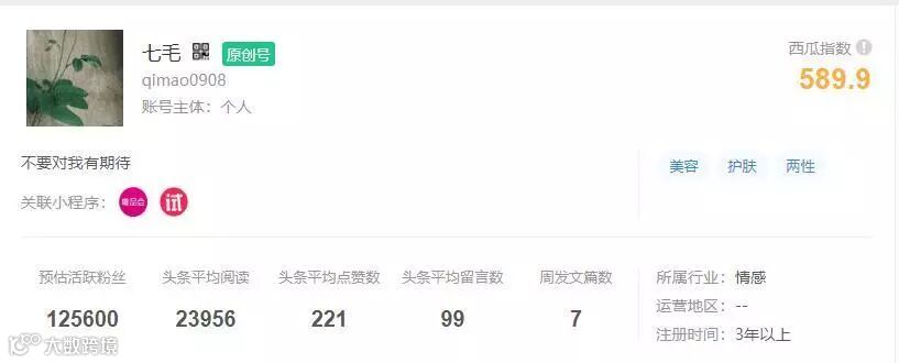 以上五个号就是本周为大家推荐的情感、美妆类的优质公众号啦,如果有特别想要了解的行业优质公众号,可以在留言中告诉小编哦。报价与联系方式可在西瓜数据平台搜索公众号,在公众号详情页面中查看哈。