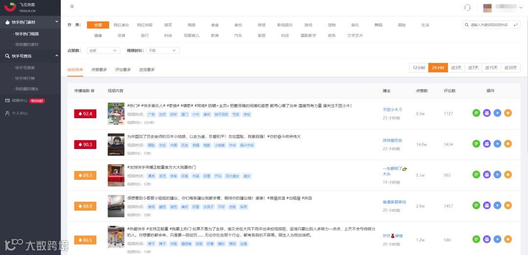 △飞瓜数据快手版热门快手视频素材