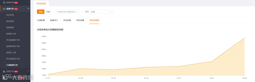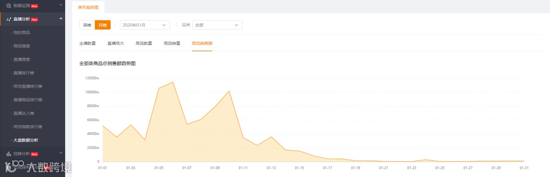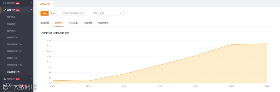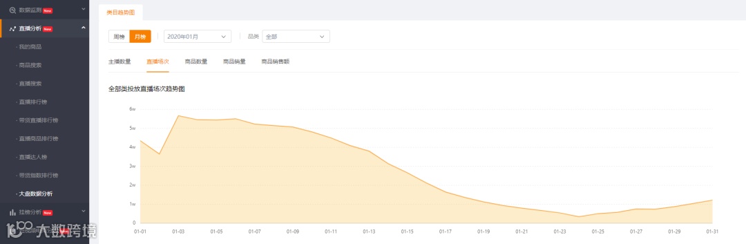 由于大家都宅在家里,短视频APP流量反而有明显的上涨。但是通过飞瓜快手版的大盘数据分析可以发现一月下旬,整体快手带货直播的场次有非常明显的下降趋势。