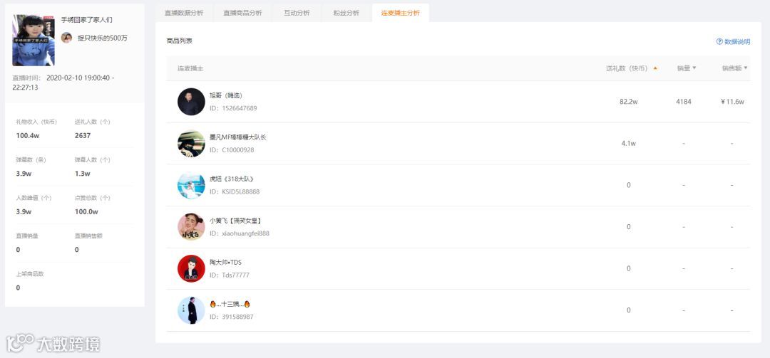 △飞瓜快手版-连麦播主分析
