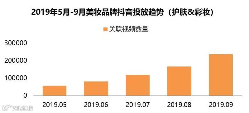 。据飞瓜数据统计显示,2019年5月-9月,美妆品牌抖音投放力度不断加大,月度关联视频数量不断上升。