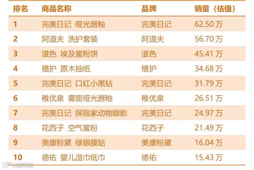 2019年双十一淘宝直播爆款商品预估销量TOP10