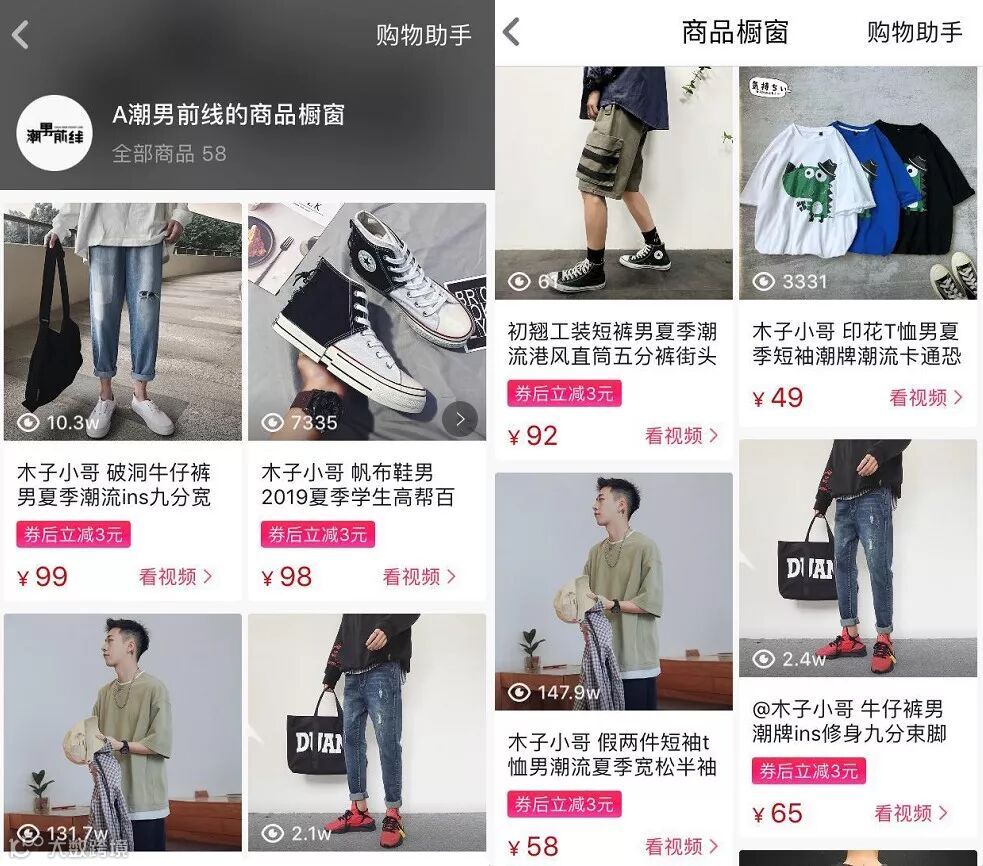 例如:排名第3的穿搭号「A潮男前线」,如果从抖音电商平台端口点击查看他的商品橱窗,好多商品浏览量数据都不错,那昨天到底是一款商品火了呢?
