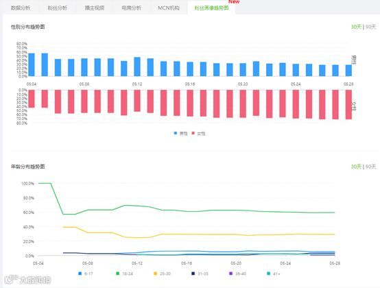 飞瓜数据-播主详情-数粉丝画像趋势图(新功能)