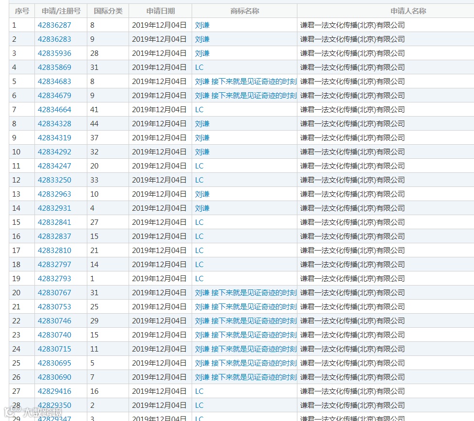 在2019年12月2日到2019年12月4日,短短三日间,其名下的公司就注册了270件商标,难道只是为了明星效应吗?其答案不为人知。