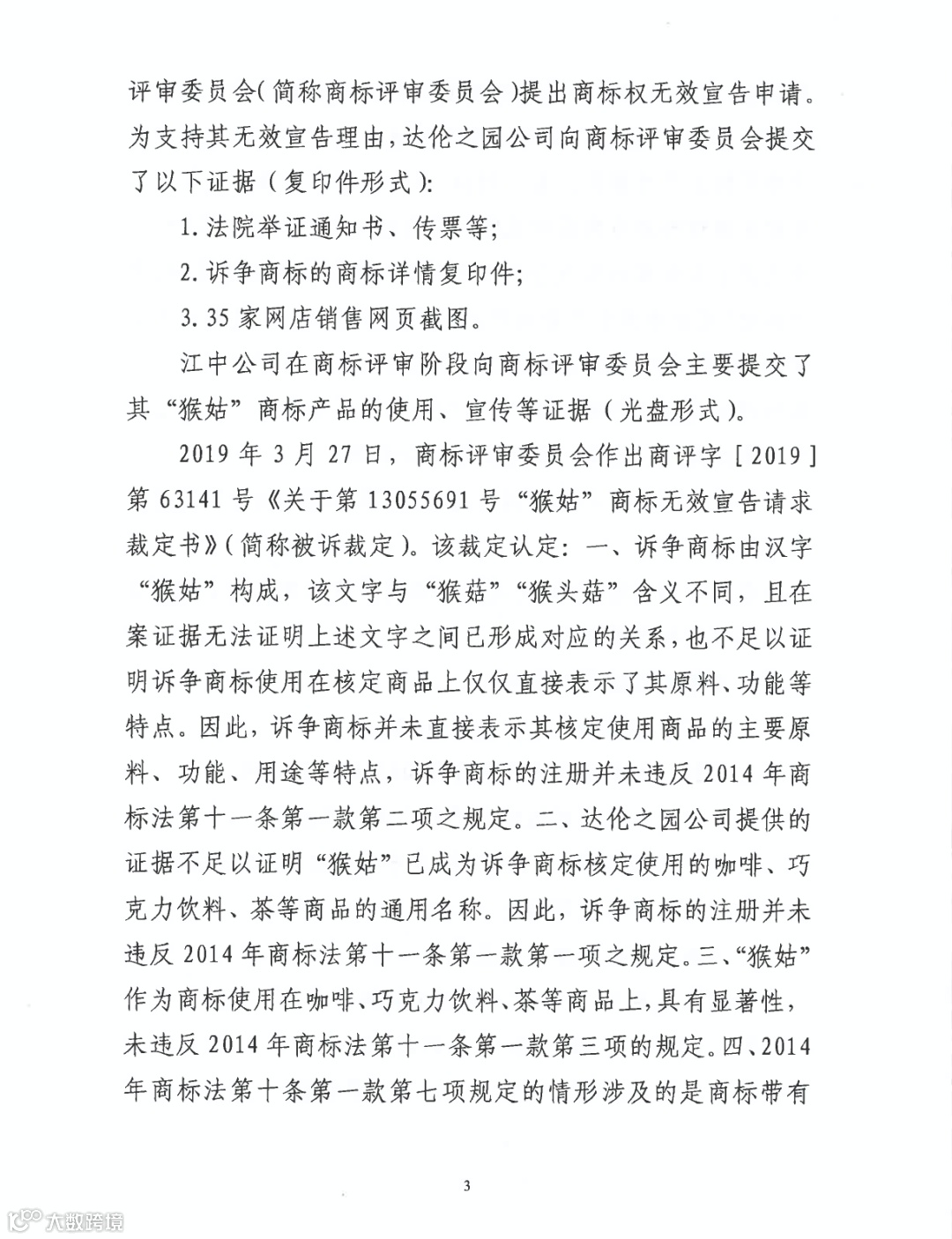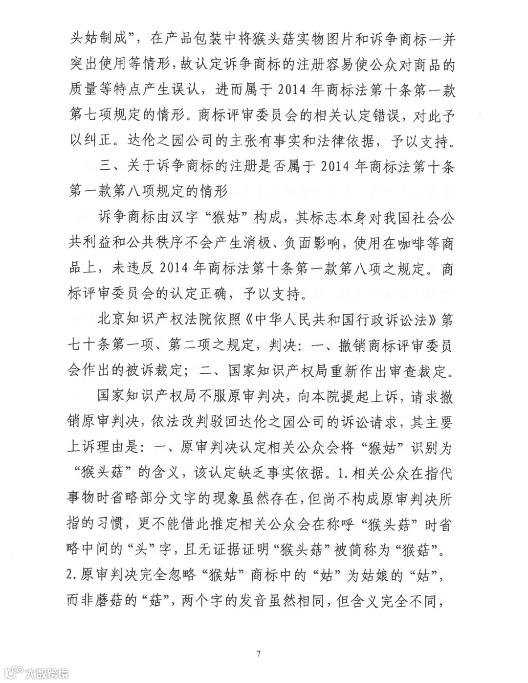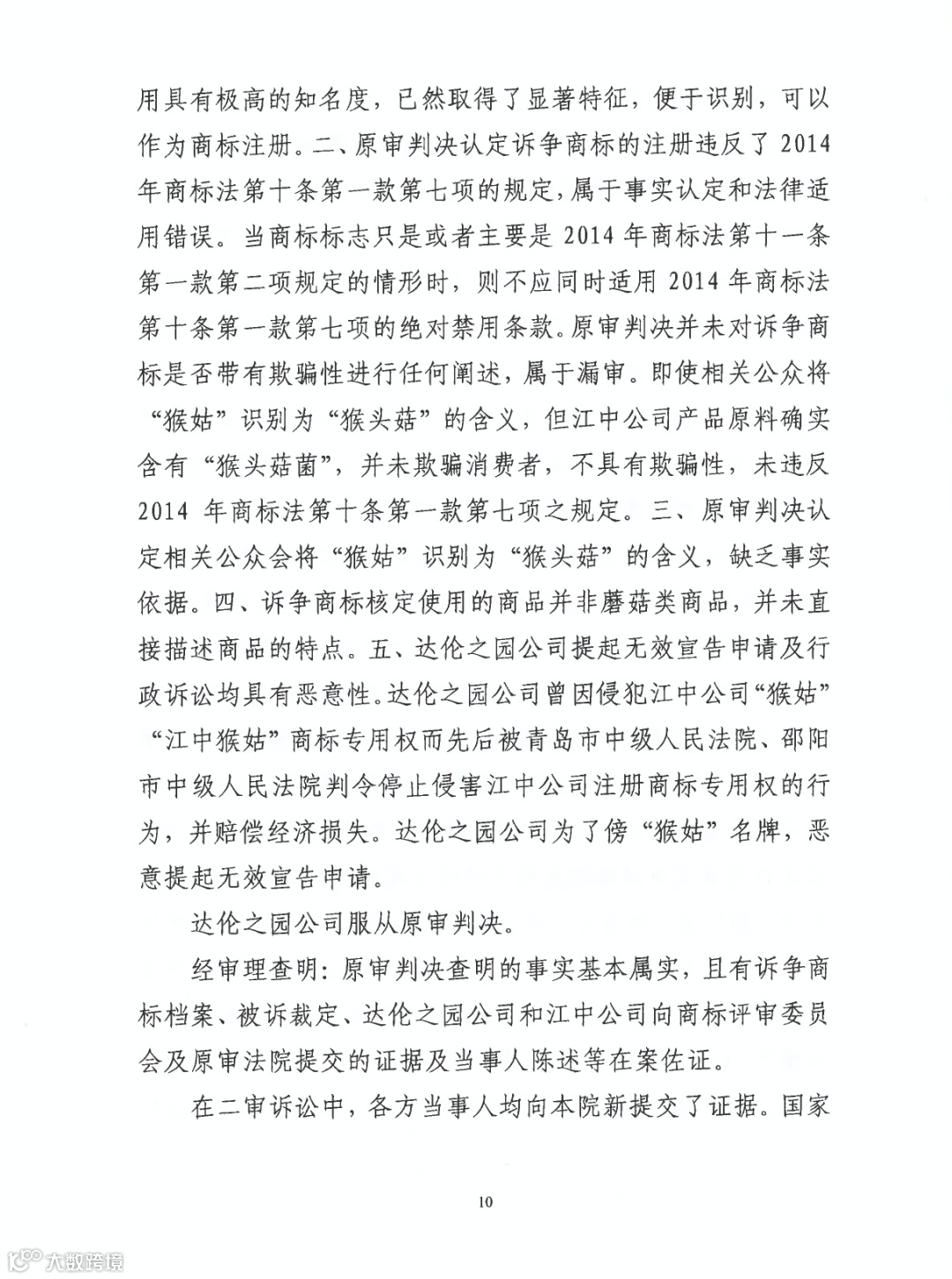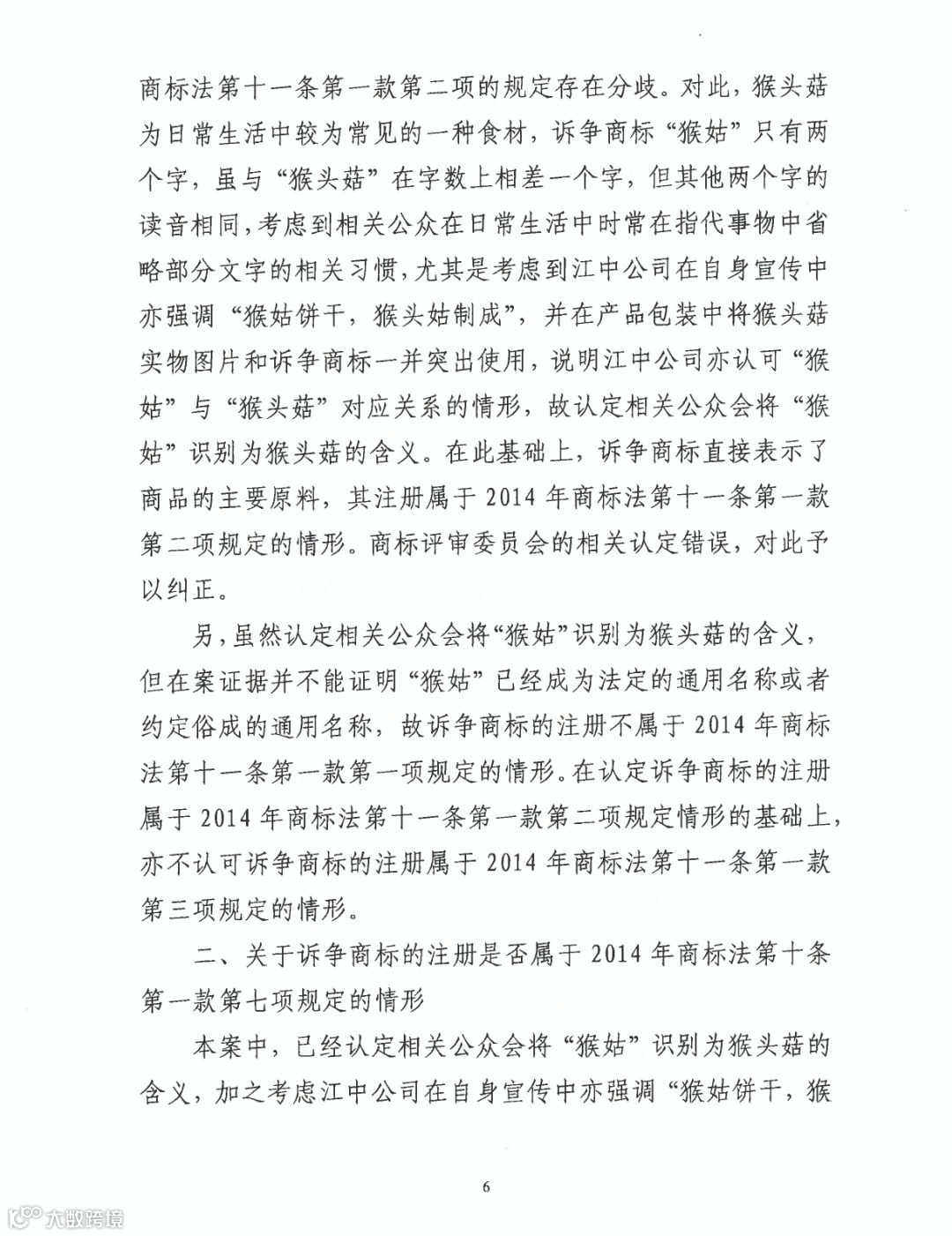 在案证据不能证明“猴姑”对应“猴头菇”,不能证明“猴姑”成为核定商品的通用名称;不能证明“猴姑”在核定商品上仅仅直接表示了商品功能特点(《商标法》11条1款2项);不易使公众对商品质量特点产生误认等(《商标法》10条1款7项)。