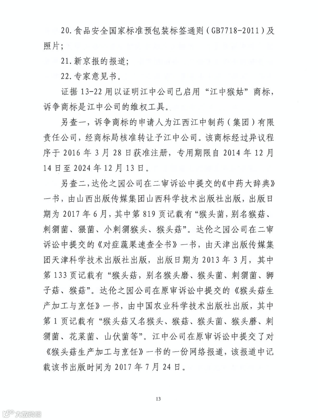 “猴姑”对应“猴头菇”案改判
