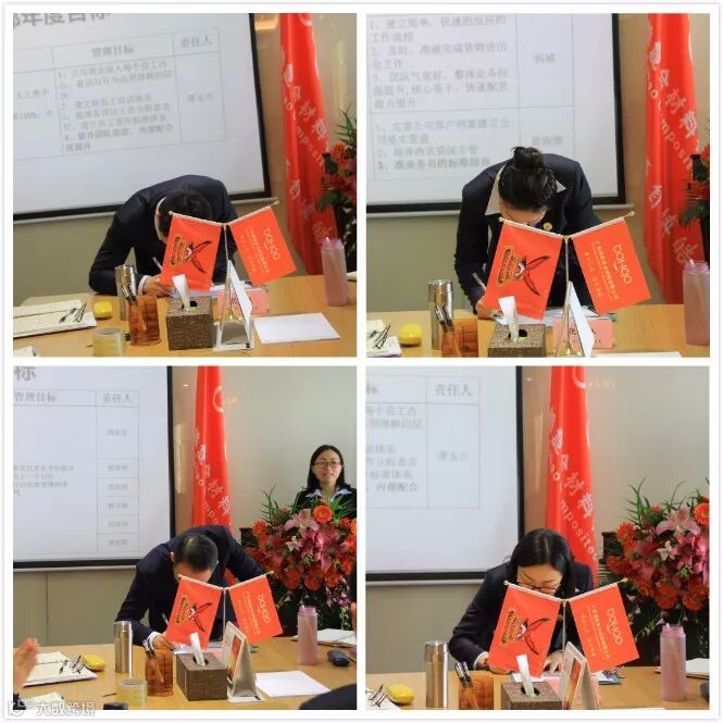 各部门长确认目标,立下军令状。正可谓承认是我的能力,不找借口!承担是我的格局,保证成果!