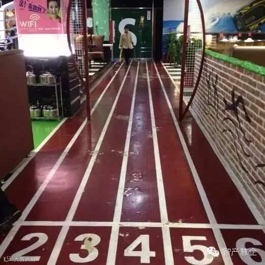 布拉格运动时尚主题火锅餐厅走的是体育运动主题路线,一进门就看到长长的跑道和位于中心的拳击台,四周还有健身器材和儿童游乐设施。