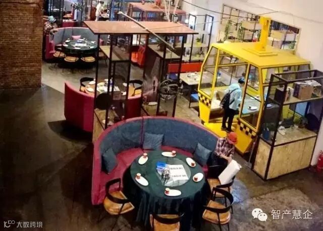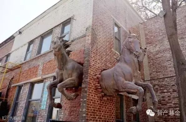乐活主题餐厅改造于上世界80年代的一个老工厂,餐厅的装潢设计非常有新意。刚到餐厅还未进门就看到三匹骏马穿墙而出。