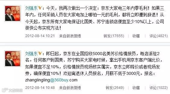 刘强东深谙此打法,用价格和物流的优势,狠打对方,让对方不得不迎战。在微博上一来一回的撕逼,媒体也跟着蜂拥而至,曝光量十足,最后以发改委喊停才结束。