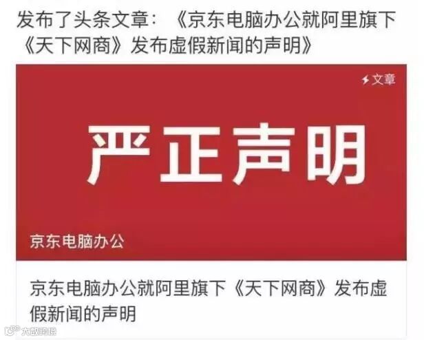 而今年618大促,本来是刘强东拿手好戏的“撕逼”营销,却被老大阿里巴巴“撕”了两回。第一次是天猫和京东的“二选一”传闻,不到半月,6月14日,京东实名举报阿里旗下媒体《天下网商》发布虚假新闻。