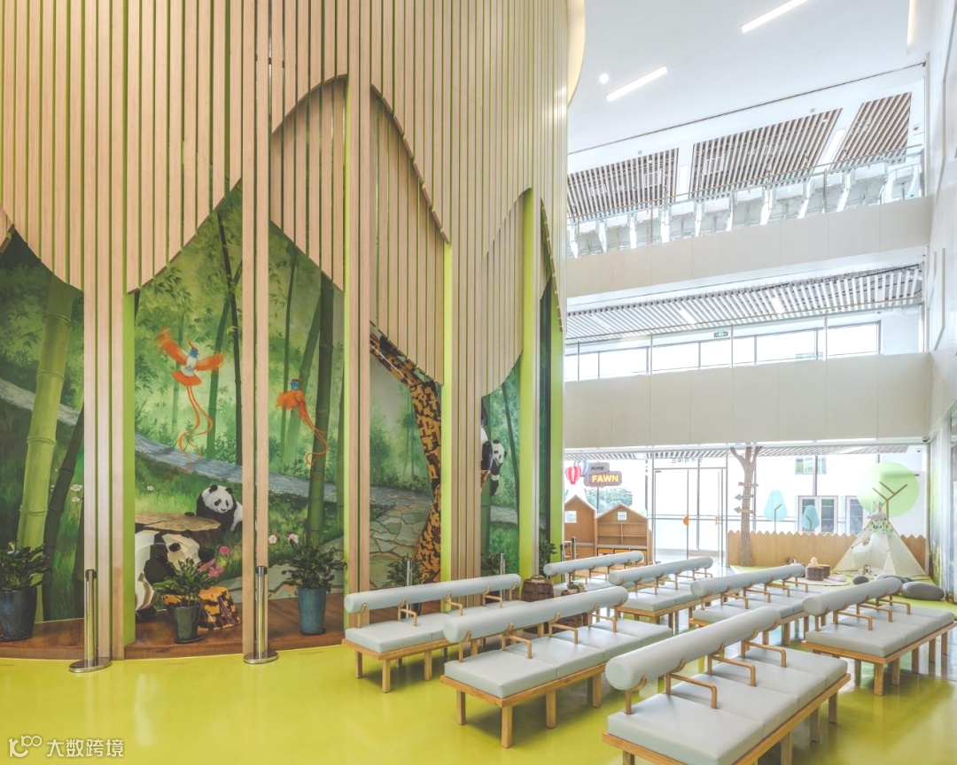 特定区域通过精装与壁画相结合的手法,营造温暖阳光的绿色空间,为手术室外焦虑等待的家长舒缓心情。
