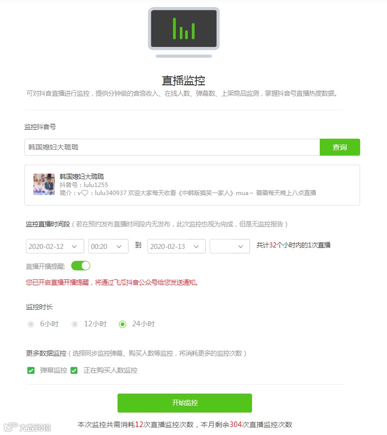并且这个数据是不可以直接追溯历史查看的,必须实时守在直播间记录才能统计,而现在,通过飞瓜数据的直播监控,就可以实现“增长购买人数”的分钟级监控记录。