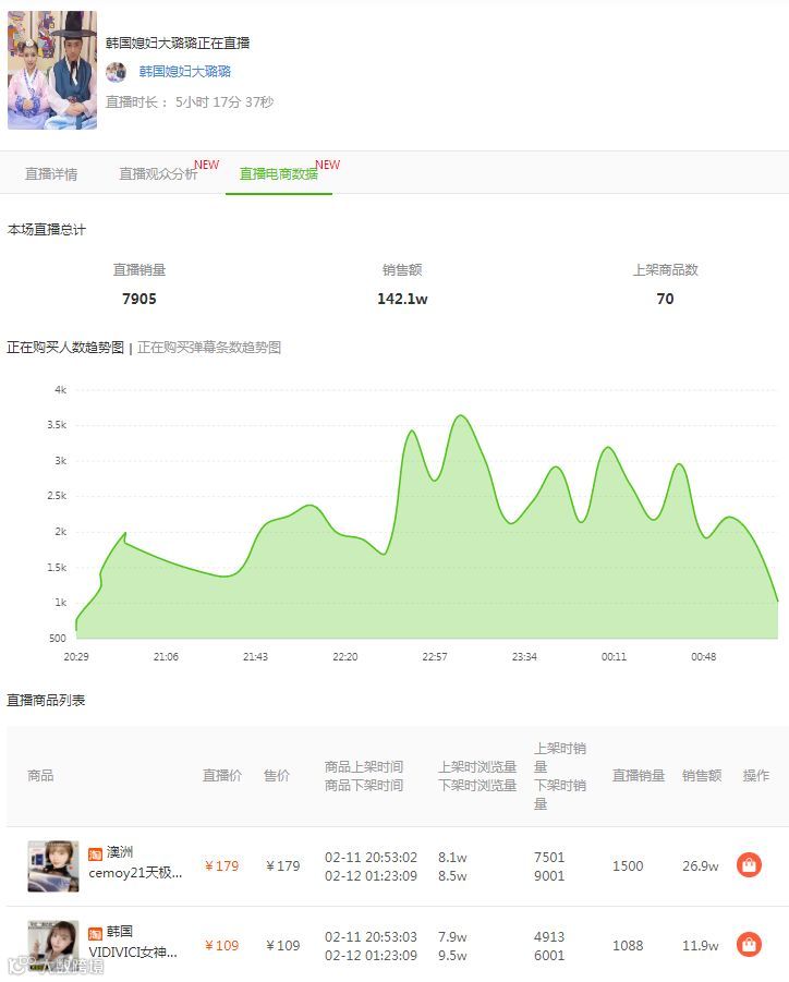 我们可以点击详情,查看该场直播的带货数据。