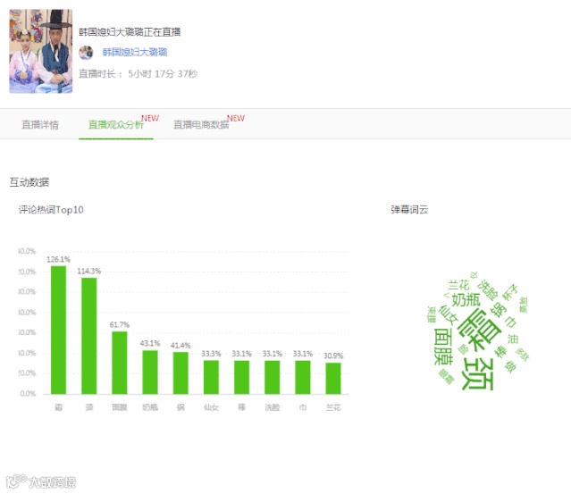还可以查看直播互动数据,包括用户的评论热词,弹幕词云,以及用户画像等等,助力更好定位直播用户画像,从而选取符合目标用户的商品进行推广。