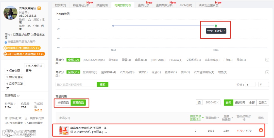 接下来,我们上榜的商品为例,来一同解读下近期带货强劲的抖音直播播主和热门爆品!