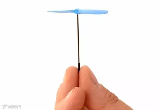 旋翼的基本理论,玩过竹蜻蜓的朋友应该都知道:当手的搓动给了竹蜻蜓一个旋转的速度后,竹蜻蜓的螺旋桨转动推动空气向下运动,就会产生升力让竹蜻蜓起飞。