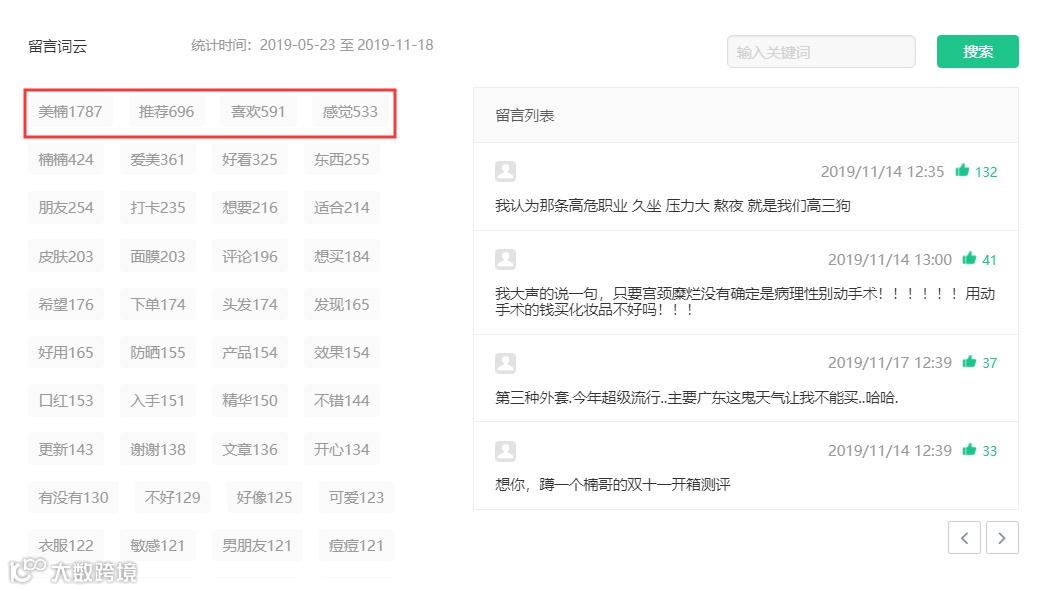从留言词云来看,大家对号主推送的文章接受度还是蛮高的,以美楠、推荐、喜欢这类的词汇出现频率最高。