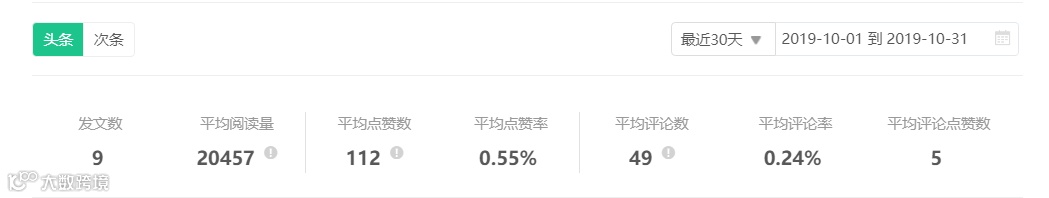 从点赞评论可见,头条平均阅读达 20457 ,平均点赞 112 ,点赞率达 0.55%。