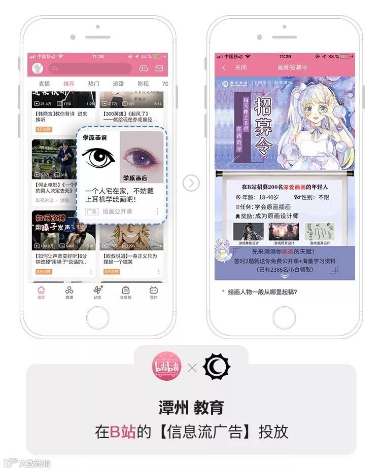 潭州教育是中国最早的在线教育平台,非常看好B站对年轻受众的影响力。在课程视频播放的同时,通过B站招募令答题测试+赠送试听课的形式,定向获取了意向客户信息,再引导到表单注册。另外,基于B站较强的社区用户粘性,潭州教育也在投放信息流广告的过程中,挖掘了用户对于其他课程的需求,孵化合适的新产品来投放B站。在不断的投放试验中,形成有效的投放模型及投放组合,大幅降低了转化成本,提高了用户购买率。