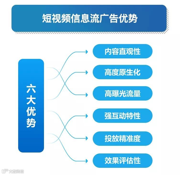 短视频信息流广告 作为广告投放形式的一种,其优势主要体现在:内容的直观性、形式的高度原生化、平台的高曝光流量、投放的精准度、用户的强互动性及投放效果的可评估性上。