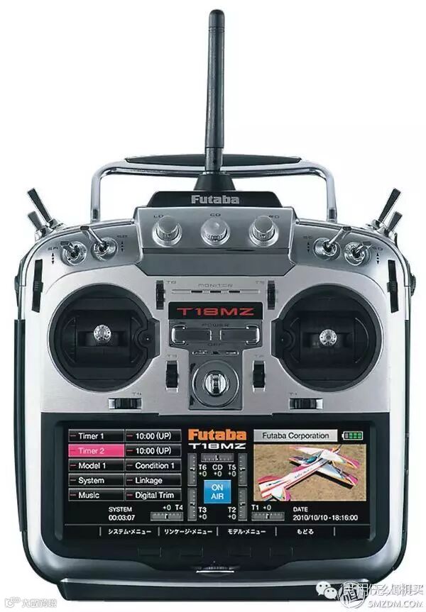 Futaba 18MZ(在售),现时Futaba 最高阶遥控,售价16K 。支持双向、触摸彩屏设定,号称遥控开可以听MP3及看A片,具体因为太高阶(屌丝穷)所以没试过,但我想在这里说一句,你是出来飞飞机的还是“打飞机”的啊!其实18MZ下面还有14MZ 、12Z、T14 SG那些,不过这里就不说了。