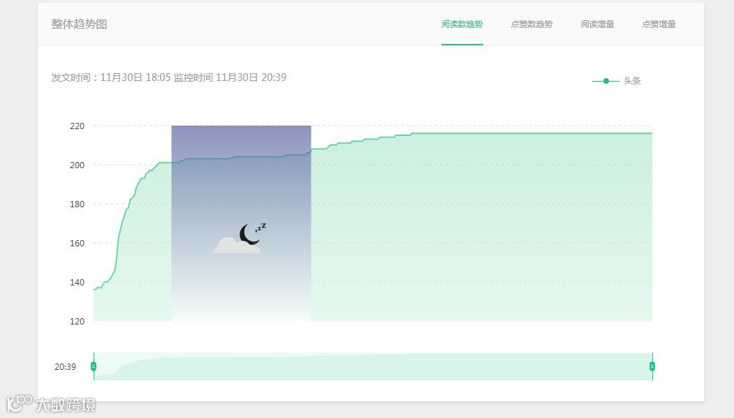 在广告投放期间,平台将实时监控文章阅读数、点赞数等数据变化,一经发现增长曲线异常将会及时人工介入,避免刷单行为给品牌主造成的损失。通过平台的数据监控,品牌主还可以及时了解投放所花费的金额和投放效果,便于优化投放策略,保障达到预期投放目标。