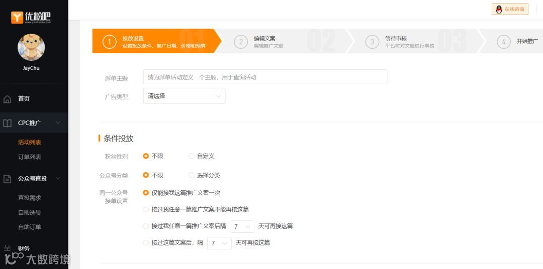 因此,优粉吧CPC广告平台有能力为广大品牌主实现更好的投放效果,促进企业的营销转化。而对于海量的中长尾账号运营者来说,我们也可以帮助他们充分利用闲置流量,解决变现困难的问题。