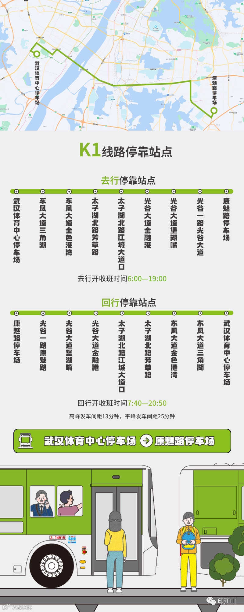 K3路(车谷—江夏)开往江夏金港汽车产业园,途经上汽通用汽车武汉基地以及数十家汽车零部件企业。