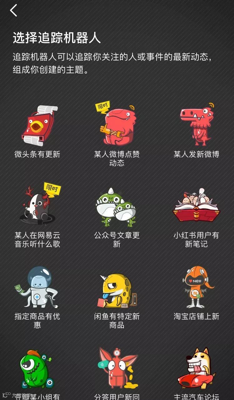 下载即刻APP后后选择【我创建的主题】-【添加一个追踪对象】-【选择追踪机器人】选择【公众号文章更新】。