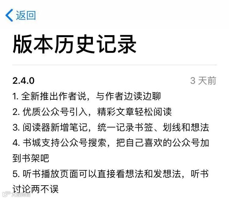 在微信读书App最新版本2.4.0更新记录中,更新了两项新功能提醒:“优质公众号引入,精彩文章轻松阅读”和“书城支持公众号搜索,把自己喜欢的公众号加到书架吧”。