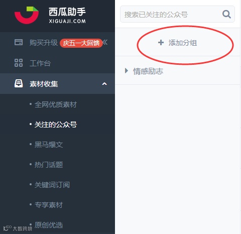 登录“西瓜助手”官网或下载APP之后,都会看到关注的公众号选项进行分组即可。