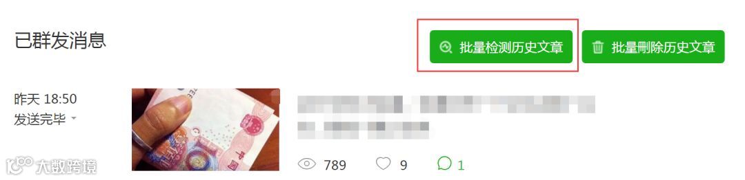 安装完插件之后,登录公众号后台,在“已群发消息”页面就能实现快速检测。
