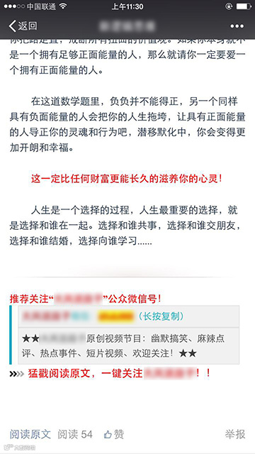 近期发现有公众帐号通过“阅读原文”进行违规互推的行为,主要形式如下: