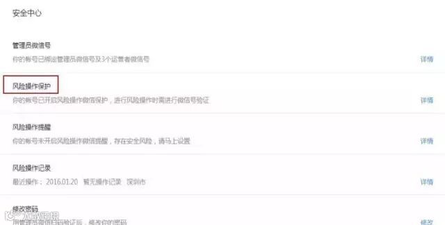 第一招: 主动开启帐号保护。未开启帐号风险操作保护的用户,可以通过以下方式设置:登录微信公众平台=》设置=》安全中心=》风险操作保护