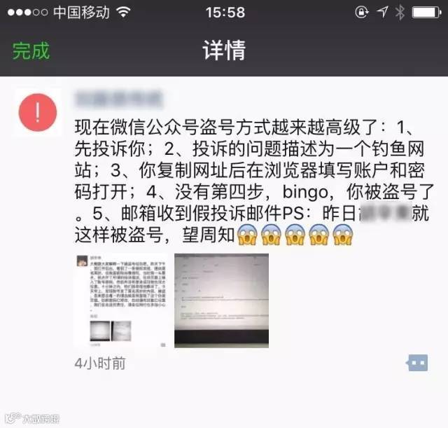 这些帐号被盗的原因是点击了如下图的恶意链接,登录了钓鱼网站,且公众帐号没有开启帐号保护: