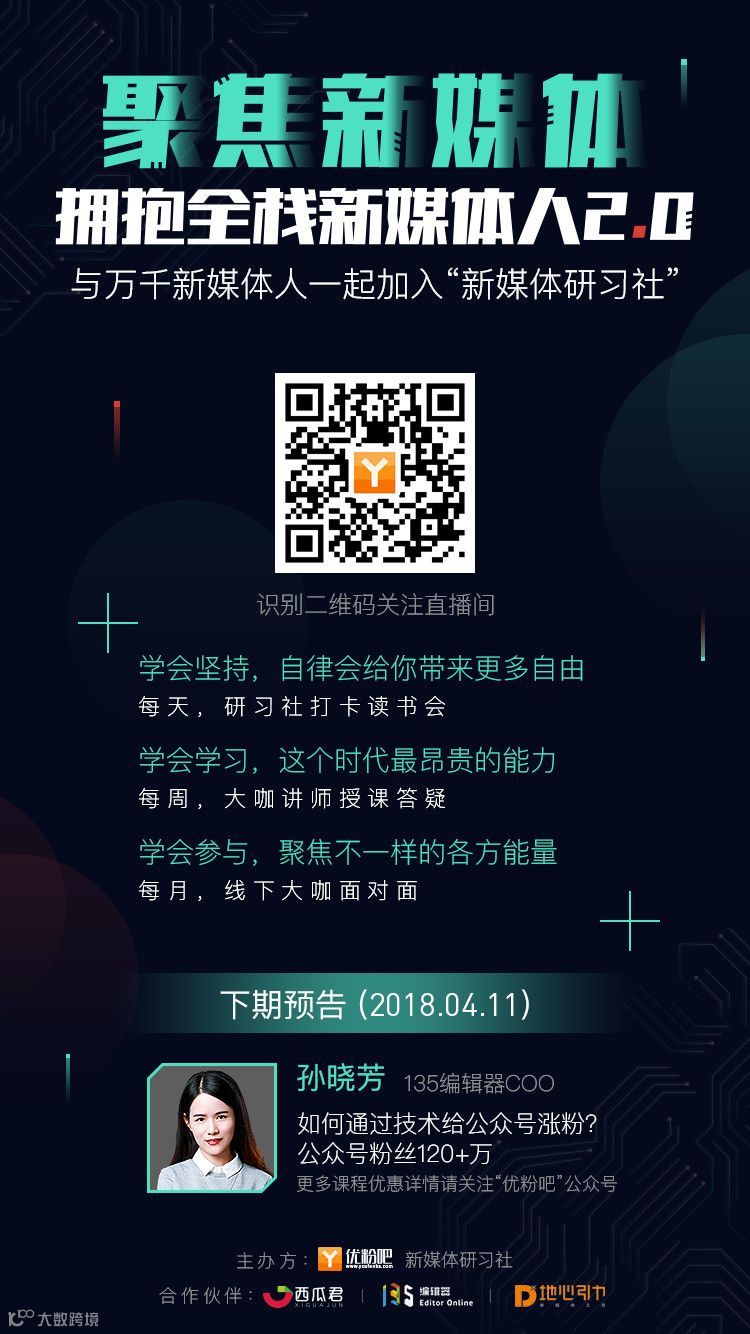 一起打造新媒体人的成长研习社,和万千新媒体人一起拥抱全栈新媒体人2.0。