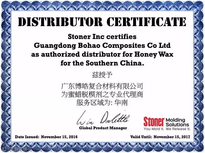 想购买正宗Stoner蜜蜡250,不用去美国,在国内就能买到!美国百年蜜蜡生产企业—Stoner 公司已授权我司--广东博皓复合材料有限公司为蜜蜡脱模剂中国经销商,华南独家代理商。