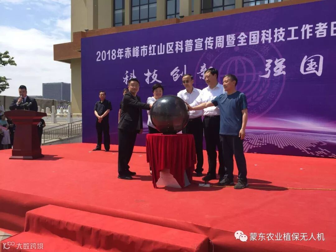 赤峰市科学技术协会主席白树森、中共红山区委副书记姚向民、中共红山区常委、宣传部长孟凡玲、红山区人大常委会副主任张旭、红山区政协副主席王力到启动球前,将右手放在启动球上,2018年红山区科普宣传周暨全国科技工作者日系列活动正式启动。